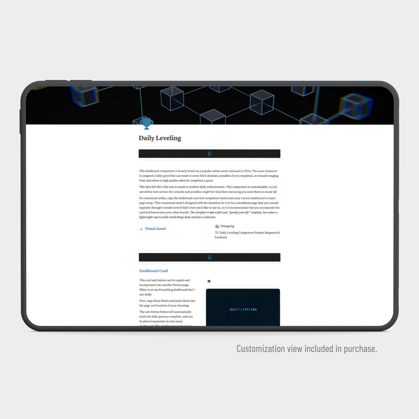 - Quick Start: Simply copy the dashboard card and completion button into your existing Notion setup. It’s designed to work seamlessly within your current pages, especially on your main dashboard.